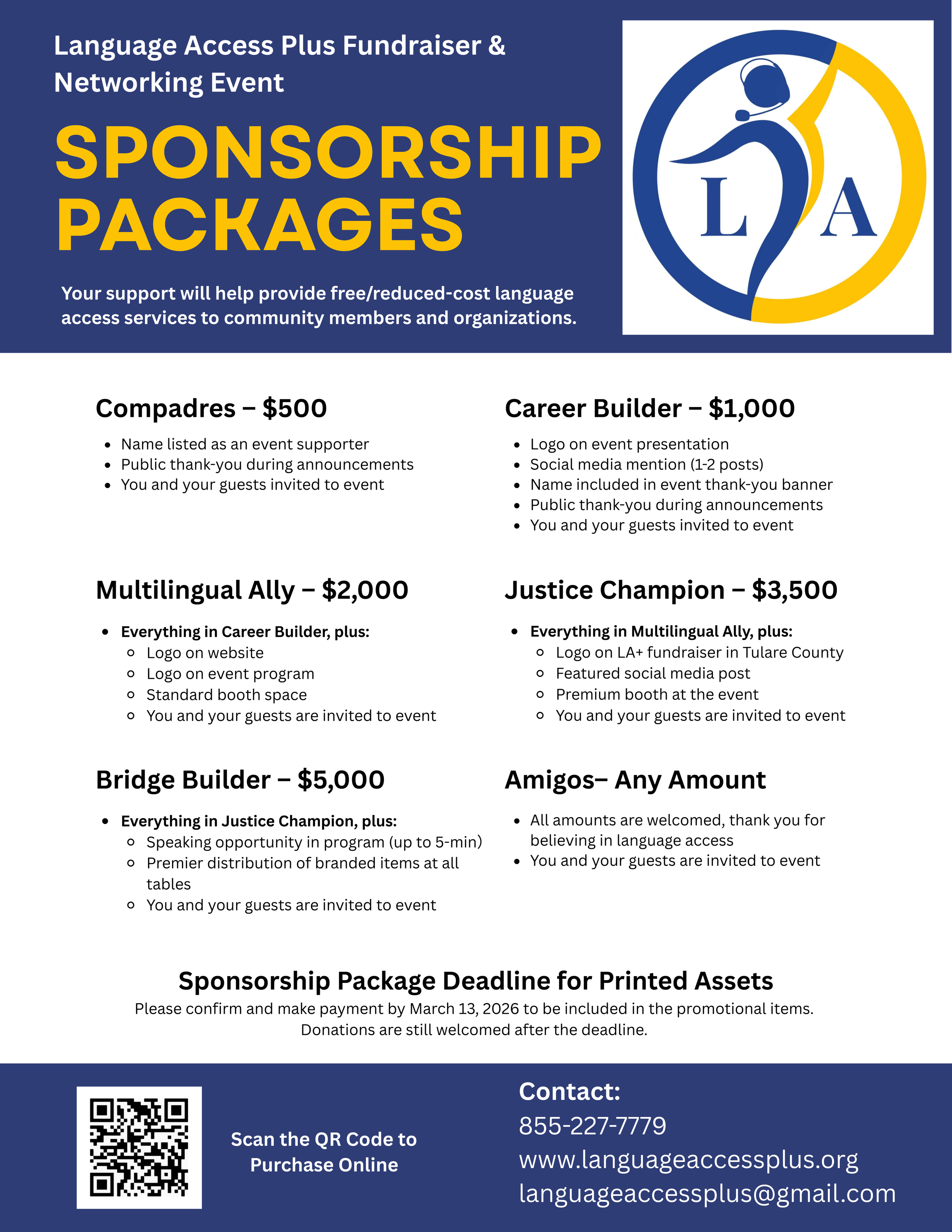 Your support will help provide free/reduced-cost language access services to community members and organizations.
